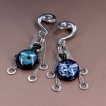 Geometric Glass and Chain Ear Weights - Rōnin Glassworks - Stretched Ears - Stainless Steel