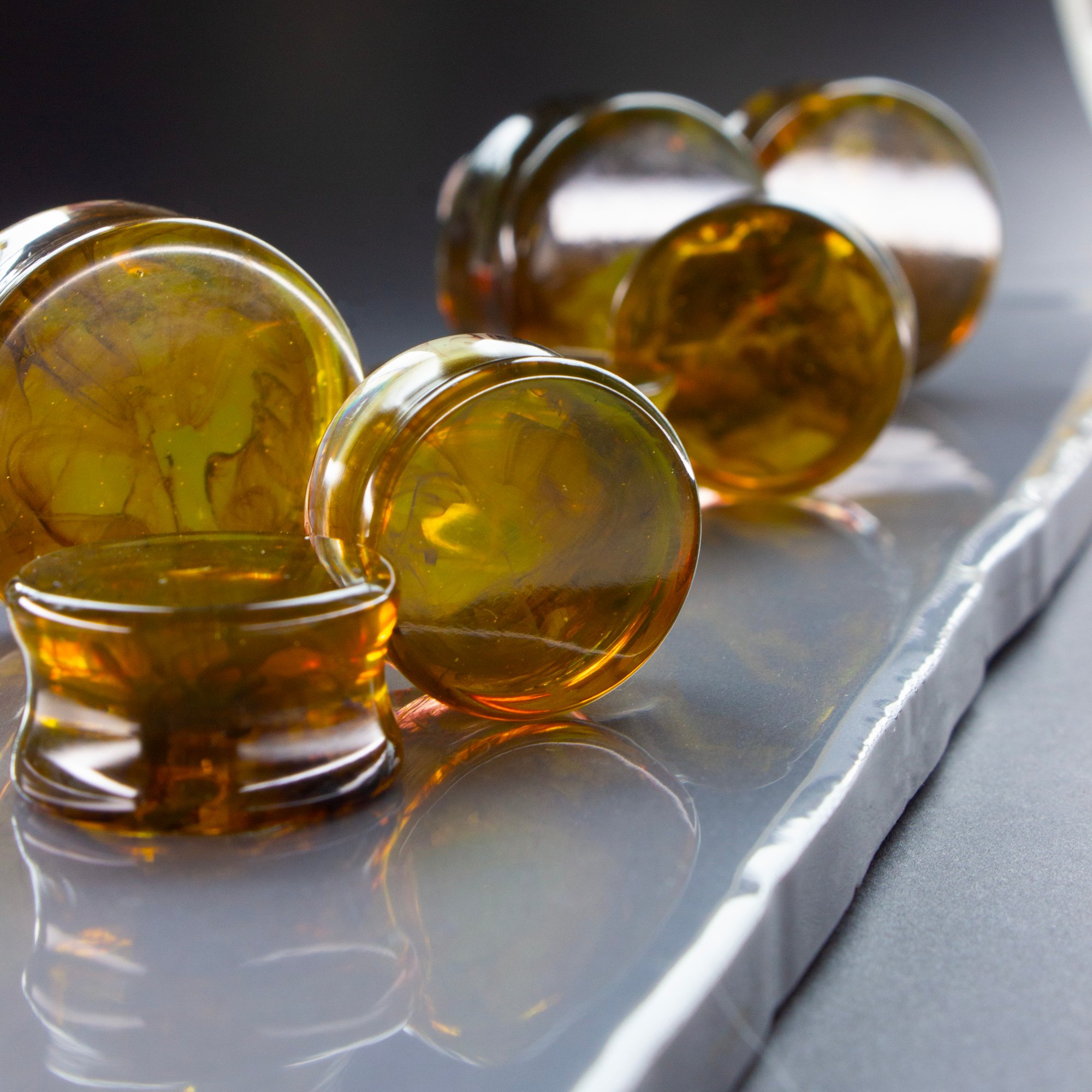 Smoke Plugs - Epoxy Resin - Round - 6mm - 50mm - Amber and Coffee - Custom Plugs for Stretched Ears