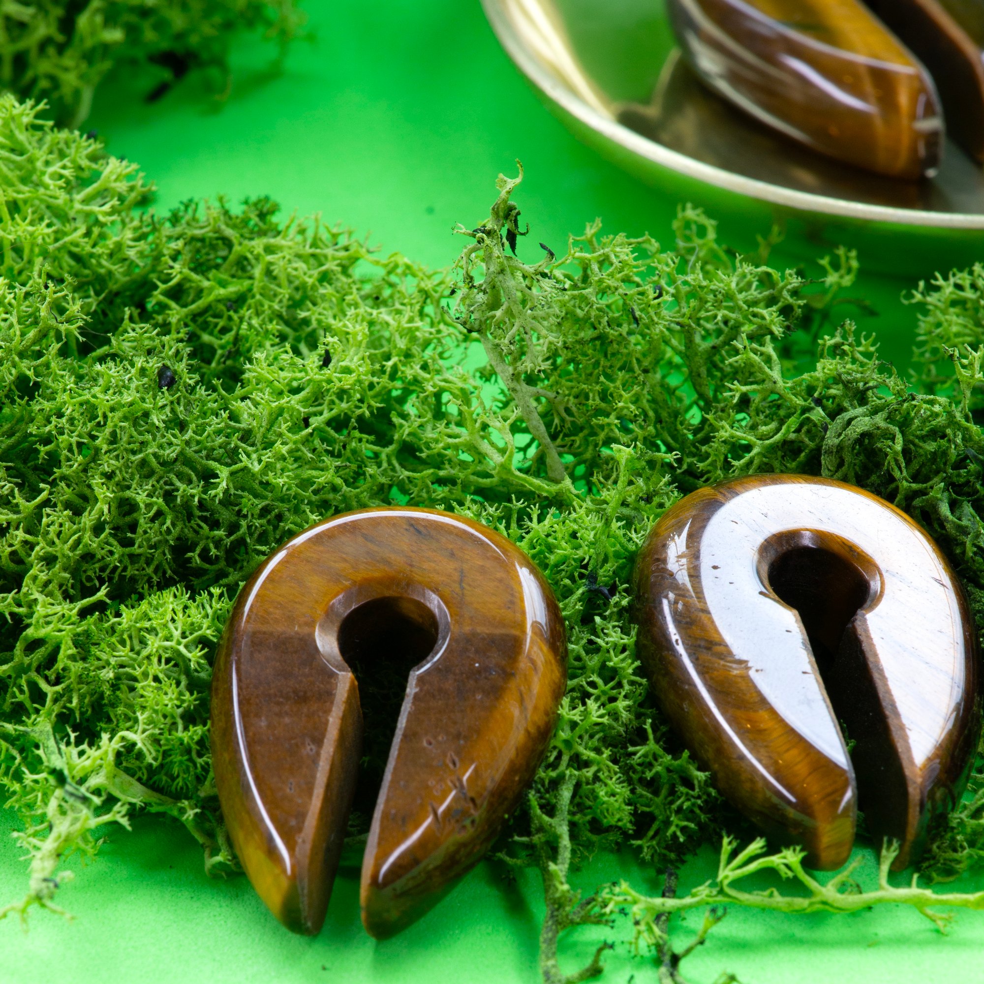 Beautiful crystal key hole ear weights in Tigers Eye. Please be aware that as a natural material, there are small flaws and imperfections, this adds to the unique quality of your piece. There may also be slight marks from the tools and machinery used to create these stunning pieces.